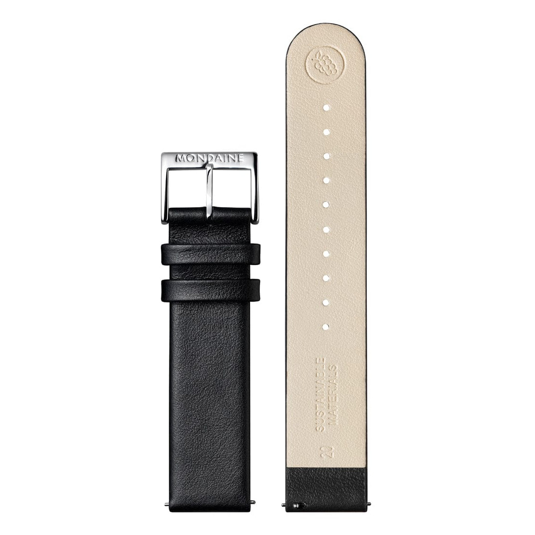 Mondaine Ersatzband, Stegbreite 20mm Wechselband Veganes-Trauben-Leder schwarz