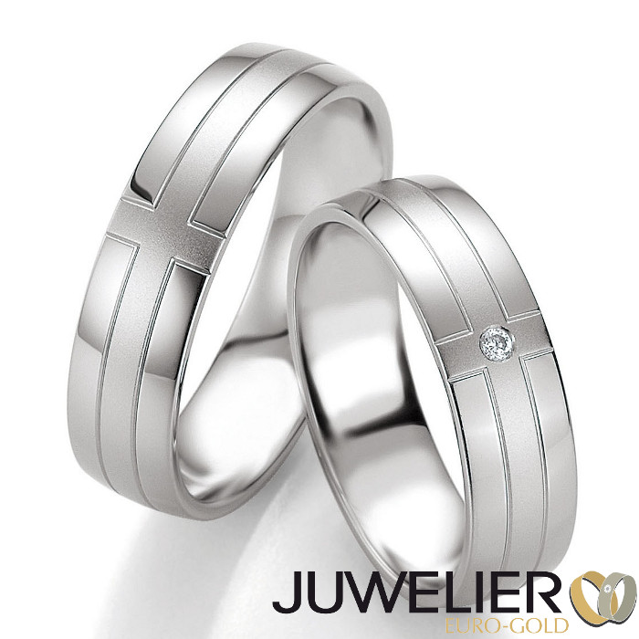 1 Paar Eheringe Trauringe Breuning in 500 Palladium 0,02ct. Brillanten