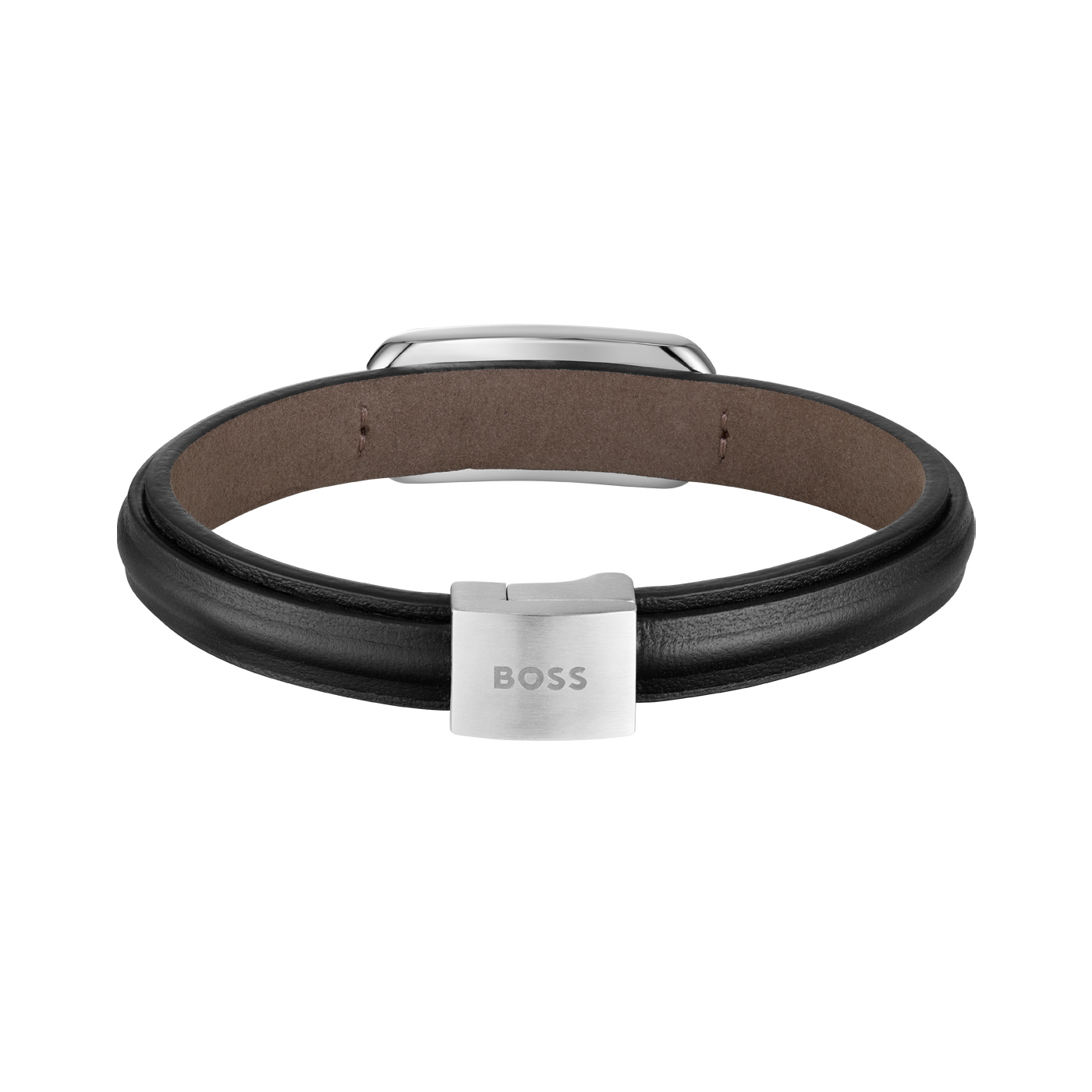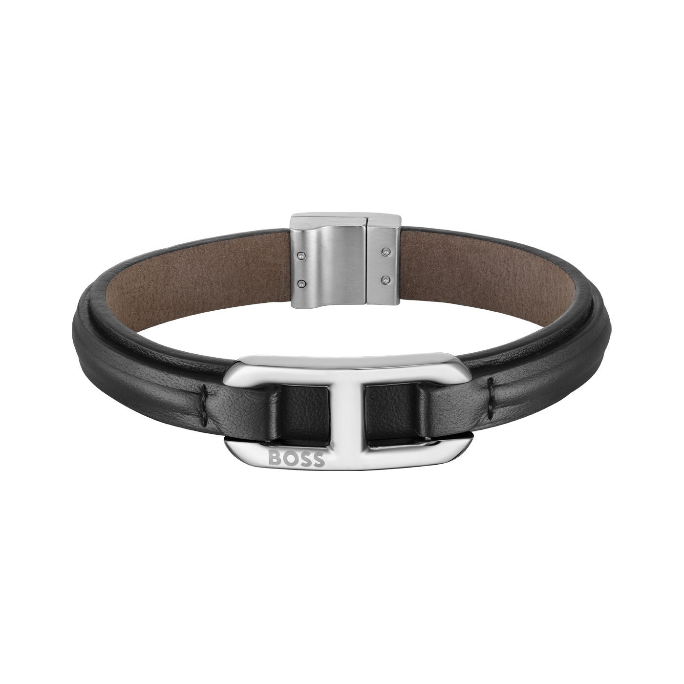 BOSS Herren Armband 1580783M schwarzes Lederband Edelstahl 21cm