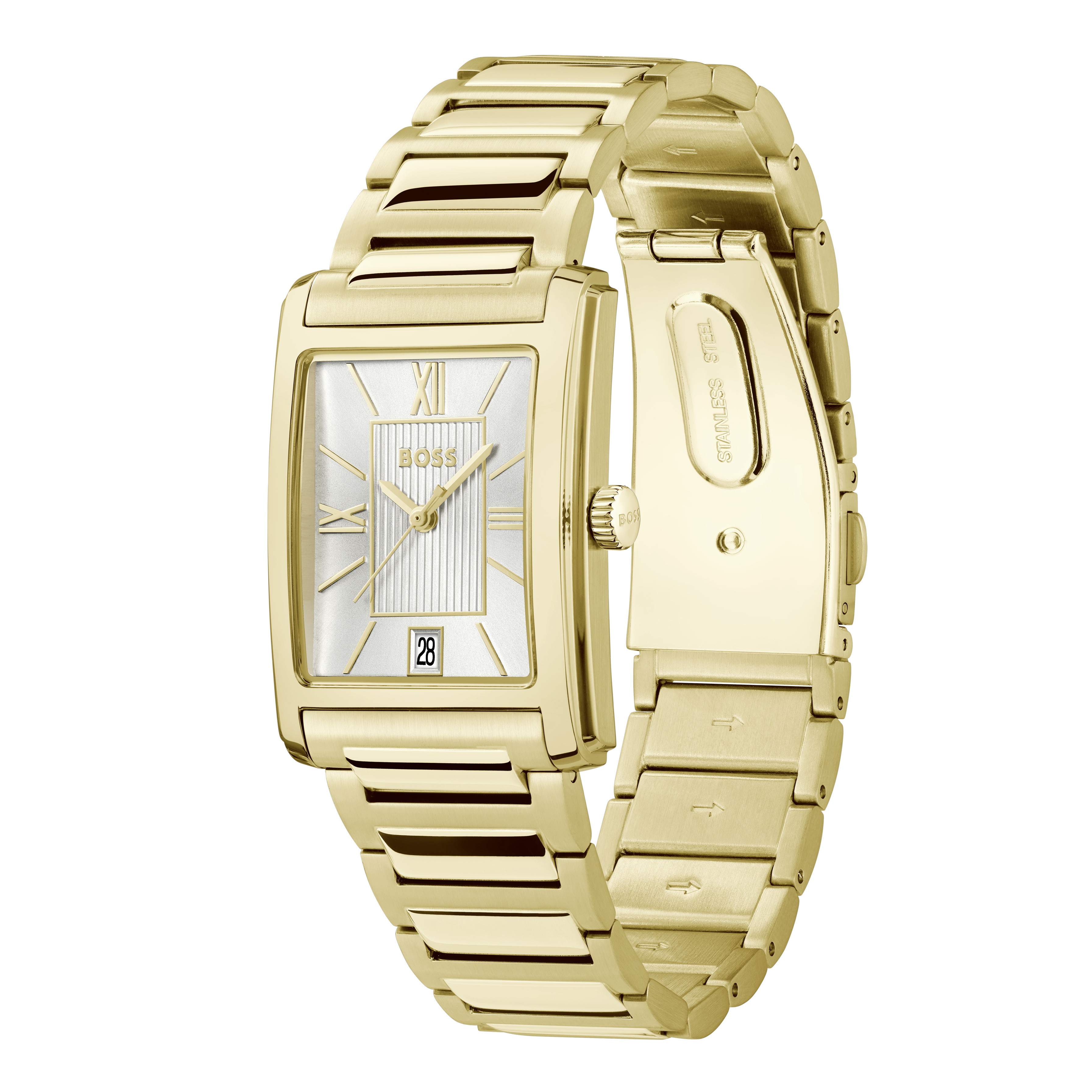 Boss Herren Armbanduhr 1514280 Edelstahl goldfarben Rechteckig