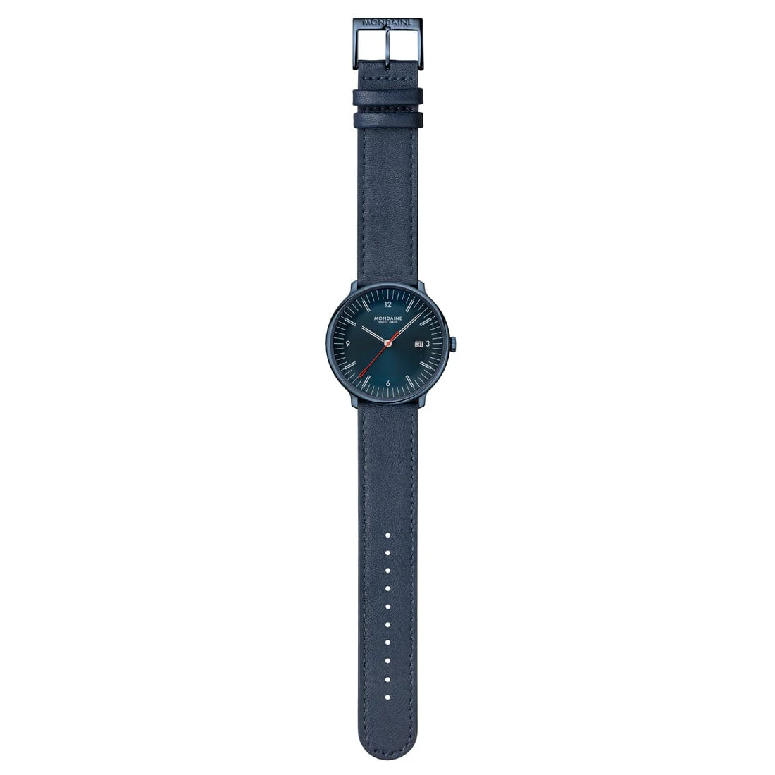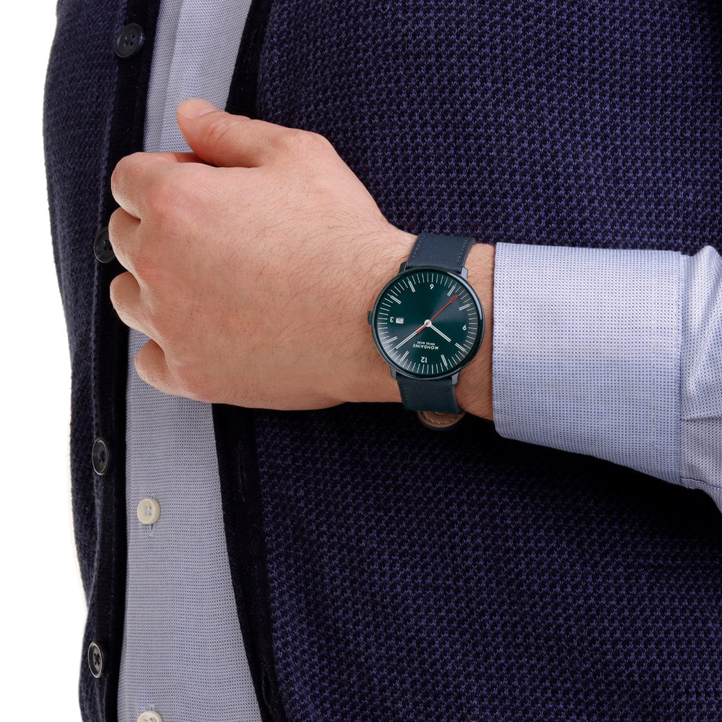 MONDAINE Armbanduhr MLE.41240.LDV Doppio Saphirglas, 41mm, Blaues Veganes Apfelleder