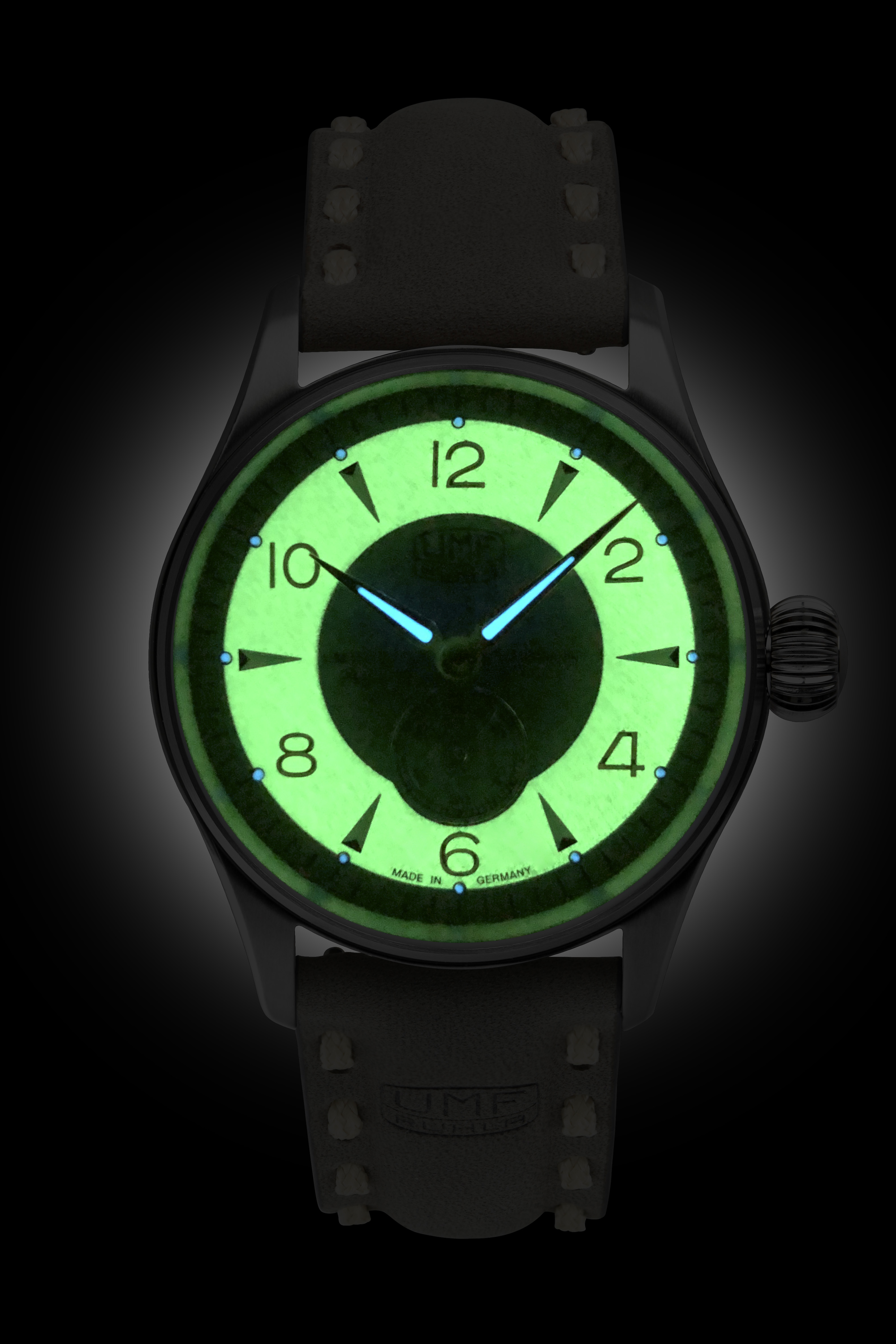 Zifferblatt : | graues vintage Zifferblatt mit Zeiger, Vollfluoreszierendes Zifferblatt |