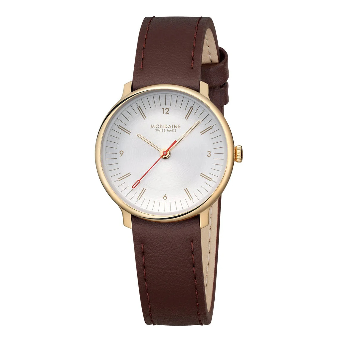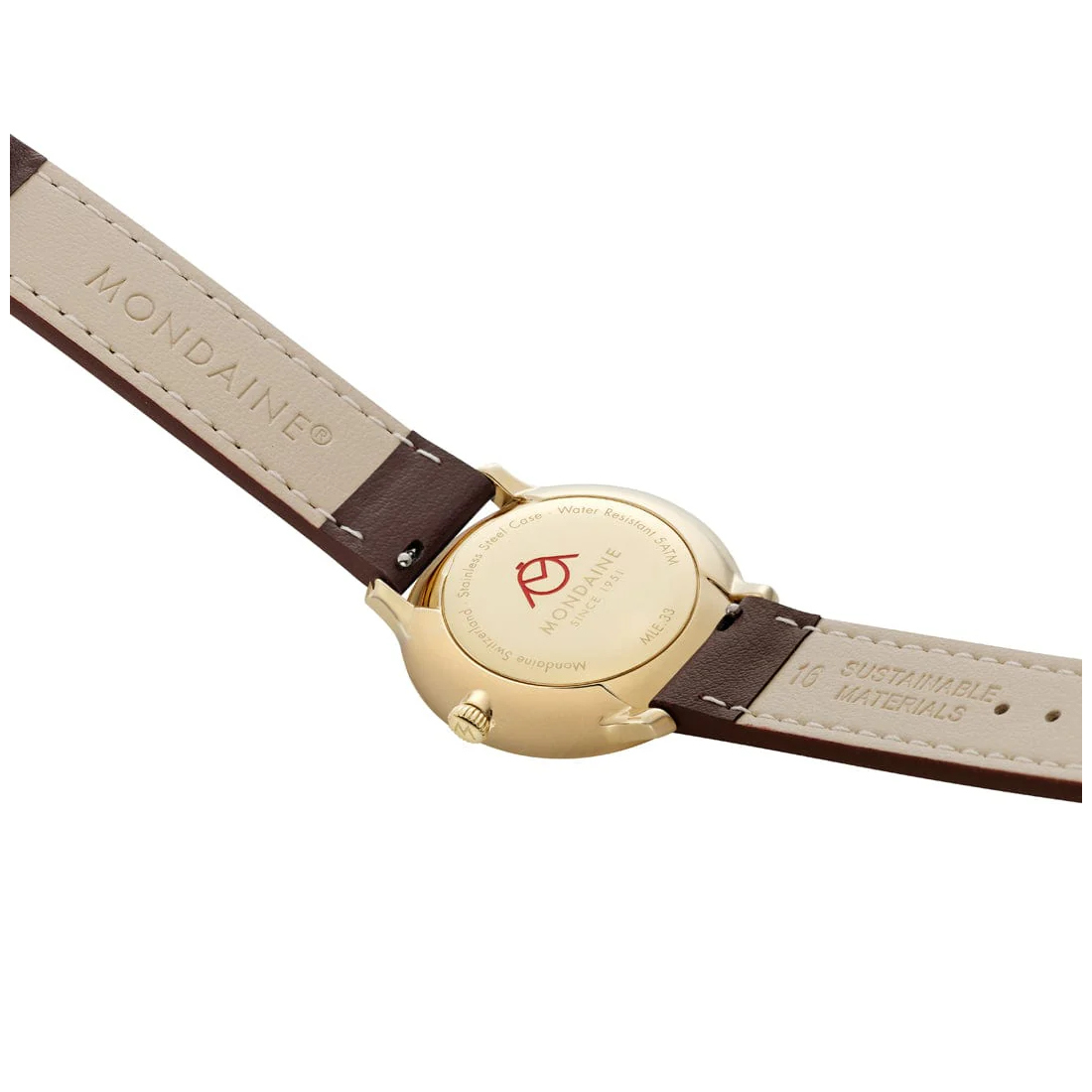 MONDAINE Armbanduhr MLE.33110.LGV Doppio Saphirglas, 33mm, Veganes Traubenleder